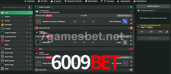 O 6009Bet oferece uma grande seleção de opções de apostas em e-sports com probabilidades competitivas